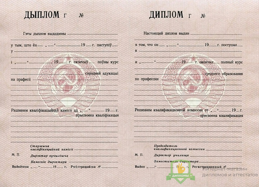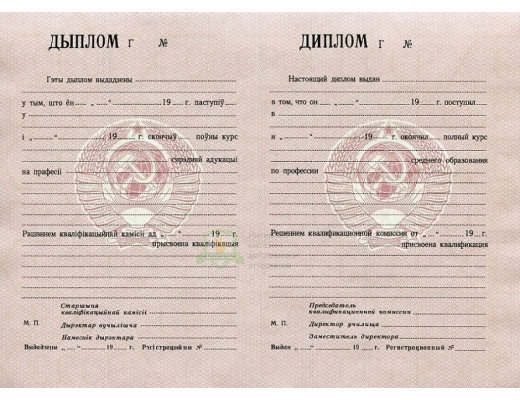 - при необходимости можно сделать заказ дипломов ПТУ / училища Белоруссии 1970 - 1993 год прошлых лет выпуска;