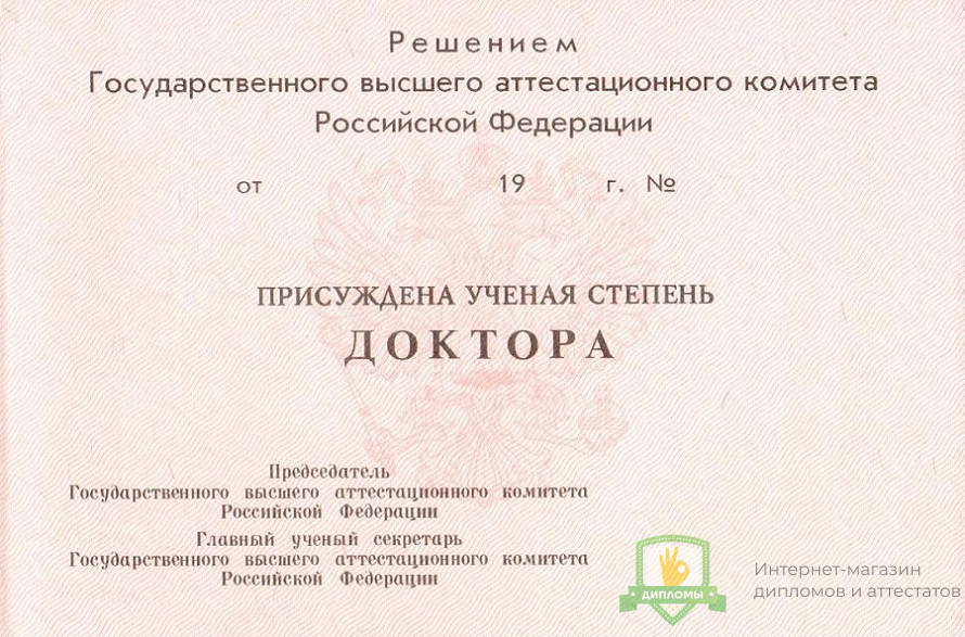 Купить диплом доктора наук 1993 - 2000 год