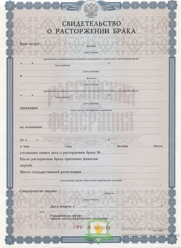 Купить свидетельство о расторжении брака 1998 - 2018 год