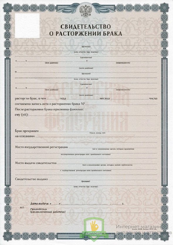 Купить свидетельство о расторжении брака 2019 - 2026 год