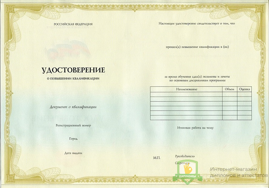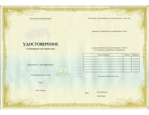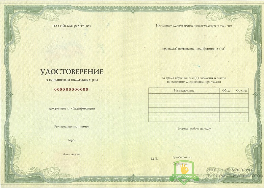 Прибрести удостоверение о повышении квалификации 2013 - 2026 год вы можете в компании «ОК-Дипломы». Работаем на профильном рынке более 20 лет, предлагая клиентам высококачественный сервис и разумные цены. У нас удостоверение о повышении квалификации 2013 - 2026 год выполняется на оригинальном бланке Гознак, дополняется подлинными подписями и печатями.