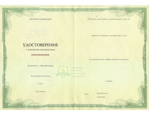 Если вы планируете купить удостоверение о повышении квалификации 2013 - 2026 год, не сомневайтесь – получаете подлинный документ, который заполняют профессионалы, имеющие многолетний опыт работы в сфере образования. Документ на 100% соответствует всем требованиями Министерства науки Российской Федерации.